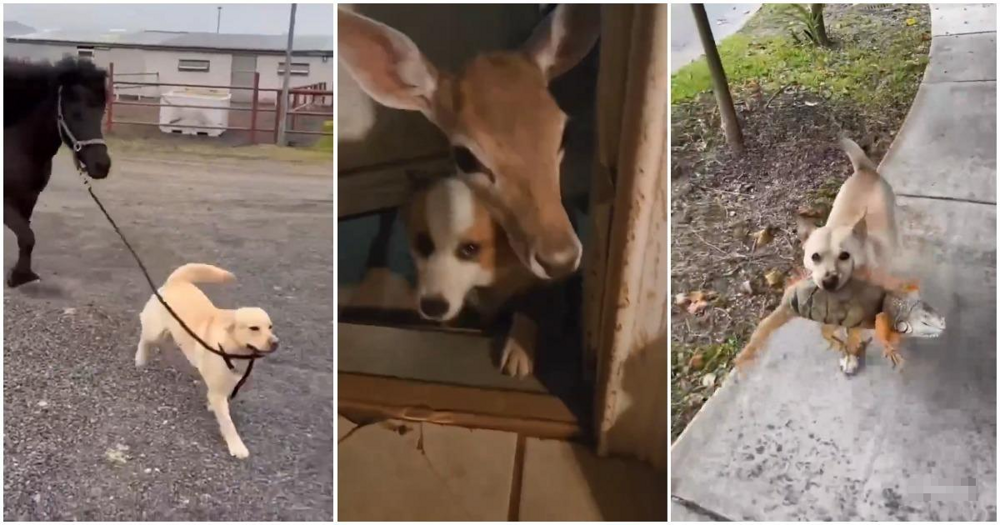Подборка видео, в которых собаки удивляли хозяев своими новыми друзьями.