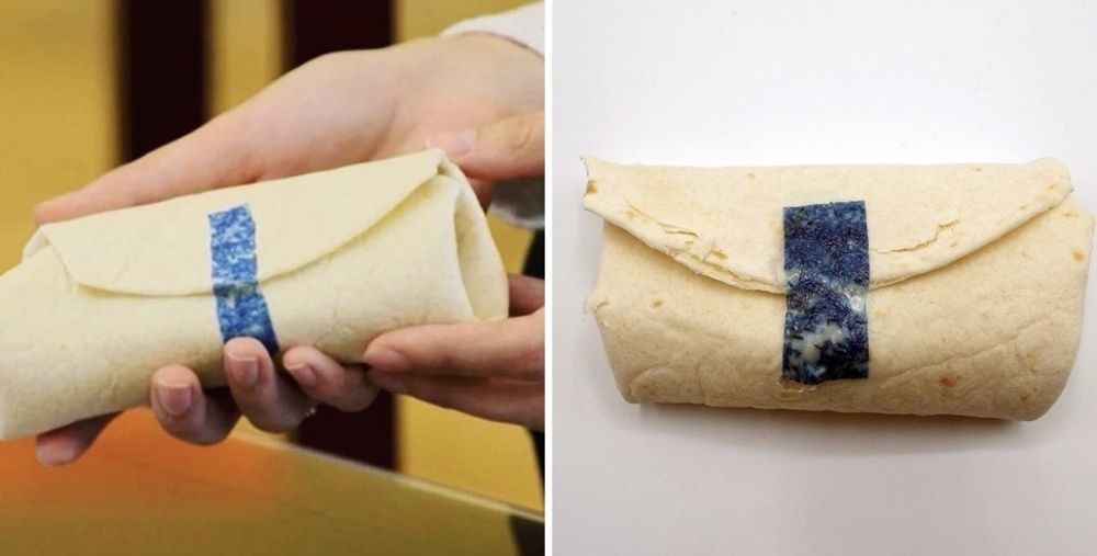 Наверняка, вам не раз приходилось бывать в ситуации, когда очень хотелось есть, но аппетит портился, когда бургер буквально разваливался в руках. Изобретатели побеспокоились об этом и придумали клейкую съедобную ленту Tastee Tape. Она легко справляется с описанной проблемой, позволяя скрепить пресловутый бургер и съесть его аккуратно, с удовольствием. Лента изготовлена из пищевого волокна и органического клея.
