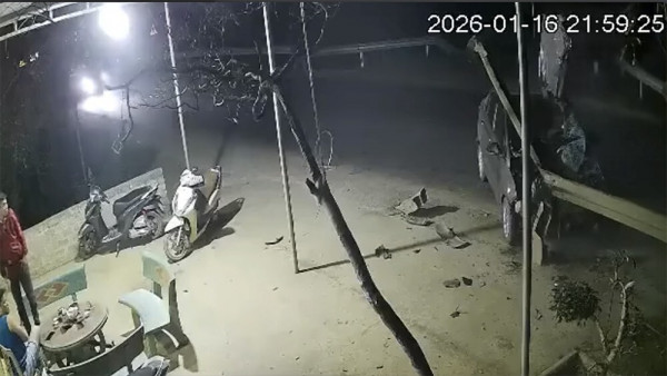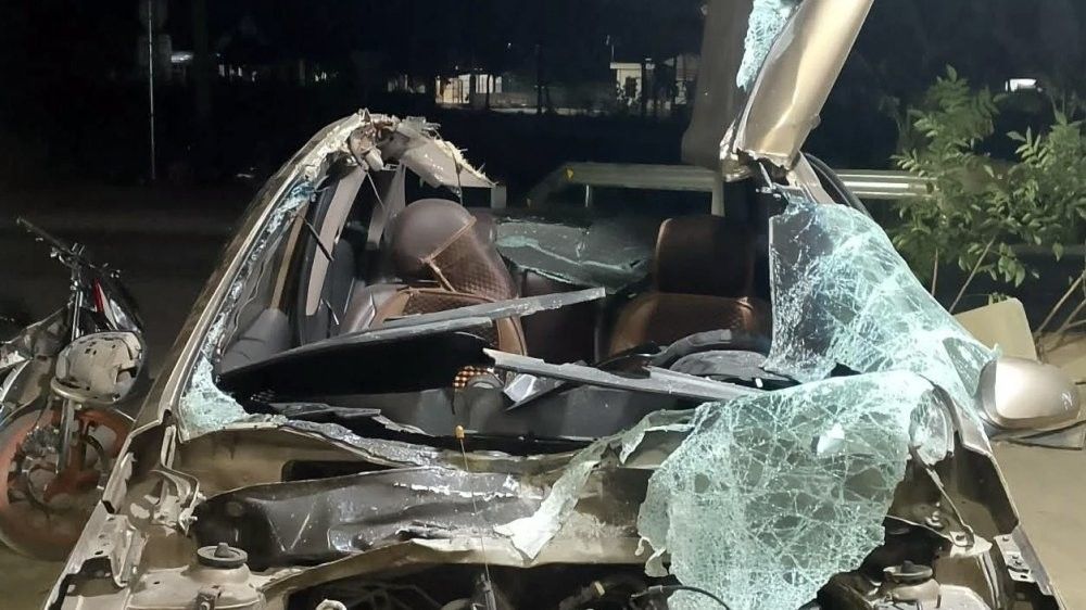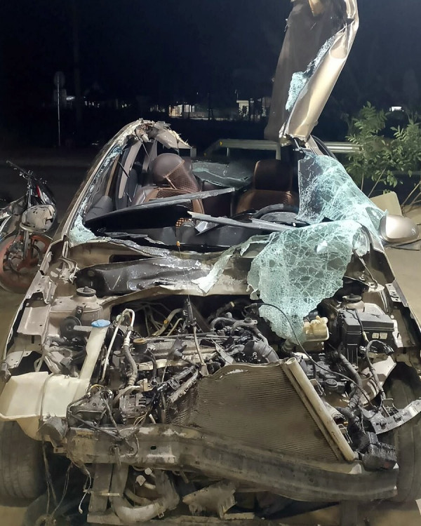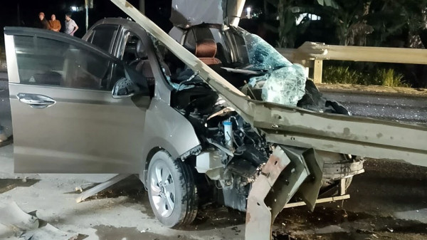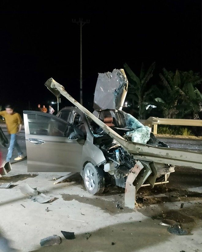 Во вьетнамской деревне Чунг водитель легкового автомобиля внезапно врезался в ограждение. Автомобиль получил серьёзные повреждения, а вот водитель отделался только царапинами.
