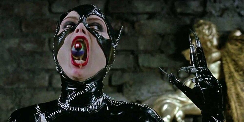 В "Бэтмен возвращается" Мишель Пфайффер снялась в печально известной сцене, где Женщина-кошка шокирует зрителей, открывая рот, из которого вылетает чирикающая птица. И да, это не компьютерная графика. Птица была настоящей.Актриса держала её во рту в течение нескольких дублей, рискуя задохнуться или навредить маленькому пернатому созданию."Оглядываясь назад, я не могу поверить, что пошла на это", - позже призналась Пфайффер.