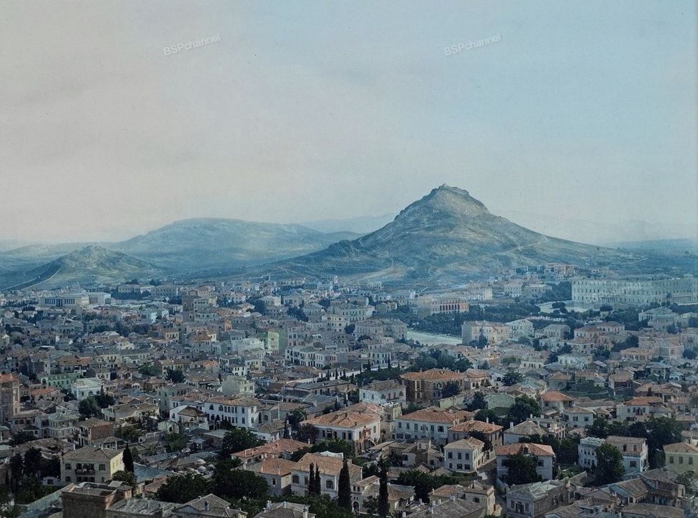 Вид на Афины с Акрополя, на заднем плане холм Ликабет. Греция, 1865 год.