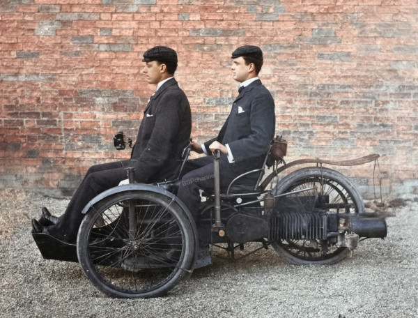 Эта фотография взята из личного альбома Чарльза Стюарта Роллса (1877-1910) - британского пионера автомобилестроения, страстного автогонщика и одного из первых авиаторов страны. На снимке запечатлён ранний Tri-Car - один из первых автомобилей с бензиновым двигателем, созданных во Франции Леоном Болле, который с 1895 года стал одним из первопроходцев отечественного автопрома. Этот трёхколёсный автомобиль отличался не только инновационной конструкцией, но и спортивными успехами: он выиграл несколько гонок во Франции в 1890-х годах. До того как в 1906 году основать вместе с сэром Фредериком Генри Ройсом легендарную компанию Rolls-Royce Ltd, Роллс активно занимался импортом и продажей французских автомобилей через свои лондонские автосалоны. Он был известной фигурой в мире автоспорта и лично участвовал во многих гонках своего времени, сочетая страсть к скорости с глубоким пониманием техники.