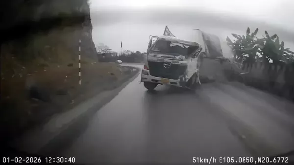 Во время спуска с вьетнамского перевала Тхунг Кхе (перевал Белого Камня) у водителя грузовика "Хино" отказала тормозная система. По данным полиции водитель грузовика получил лишь царапины.