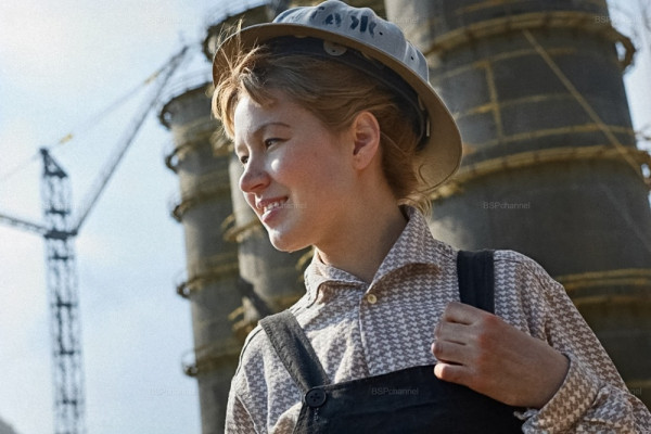 Комсомолка Софья Музафарова на строительной площадке домны №6 Нижне-Тагильского металлургического комбината, 1968 год.