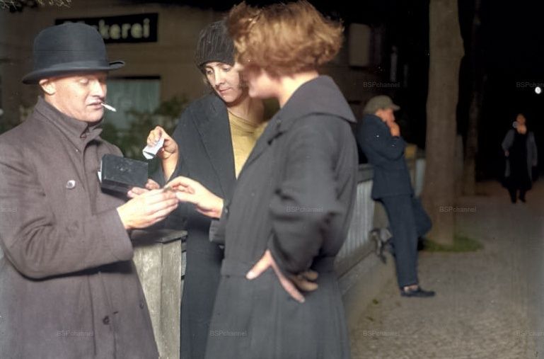 Проститутки покупают запрещенные вещества у нелегального уличного дилера - "коксового Эмиля" на жаргоне того времени. Берлин, май 1929 года.