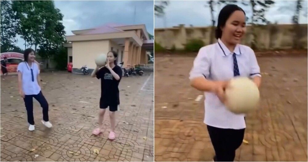 На перемене девочки играли в мяч, и одна из них, несмотря на старания, ни разу не попала по мячу. Но её желание участвовать и не сдаваться делало игру весёлой и запоминающейся для всех.