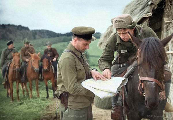 Советский солдат сообщает о результатах разведывательной миссии, 1941-1945 год.