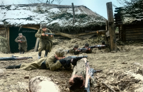 Советские солдаты ведут бой за населенный пункт, 1943 год.