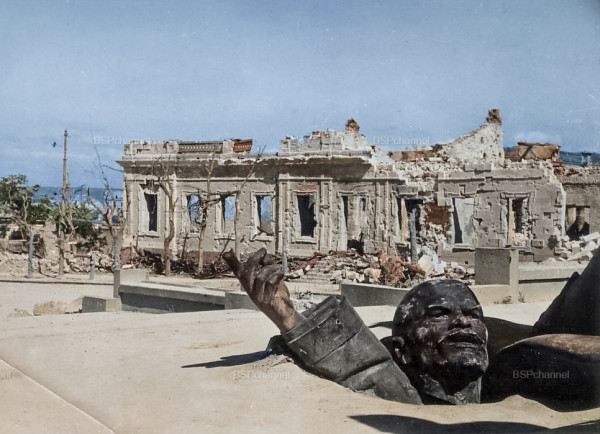 Взорванный гитлеровцами памятник Ленину в Севастополе, 1942 год.