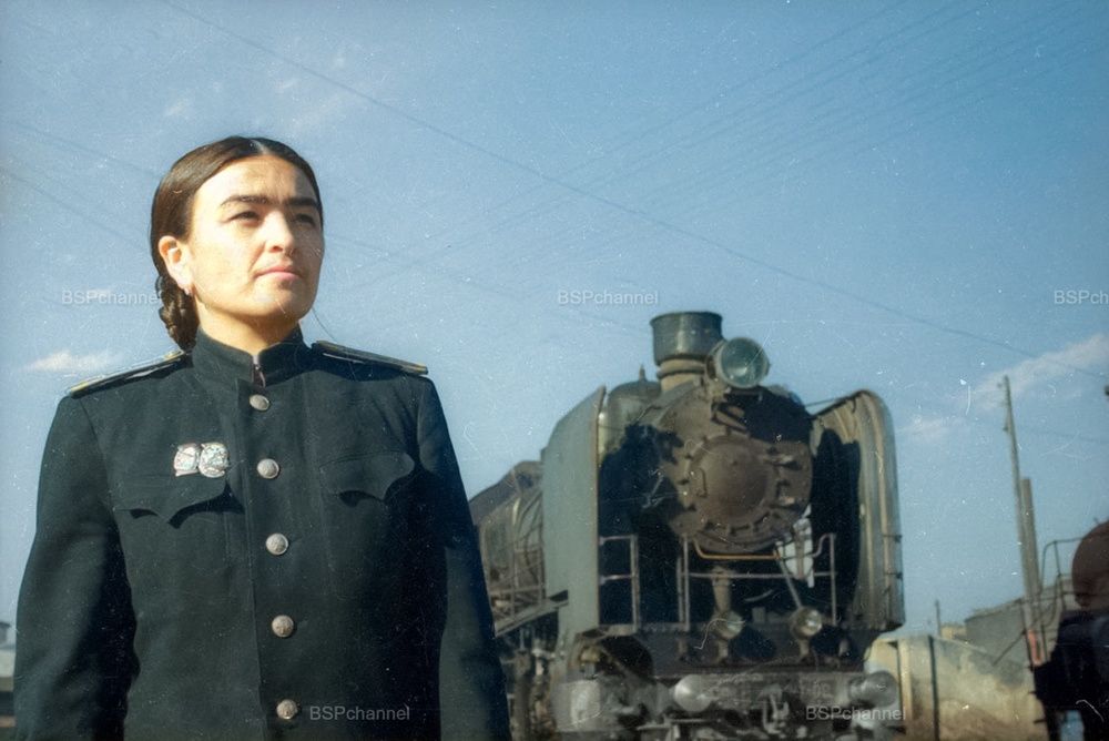 Машинист паровоза Гулям Гасанова. Азербайджанская ССР, г. Баку, 1943 год.