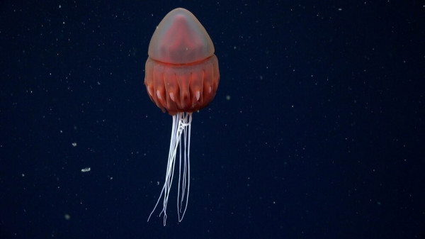 На глубине 250 метров камеры засняли гигантскую призрачную медузу Stygiomedusa gigantea. Купол - до метра в диаметре, четыре "руки" тянутся на 10 метров. Жалящих щупалец нет, добычу она ловит, захватывая планктон и мелкую рыбу. За целое столетие это лишь 130-е наблюдение этого вида.Ещё учёные нашли активный холодный сип площадью в квадратный километр - место, где метан просачивается со дна, питая микроорганизмы, а те - моллюсков и червей.