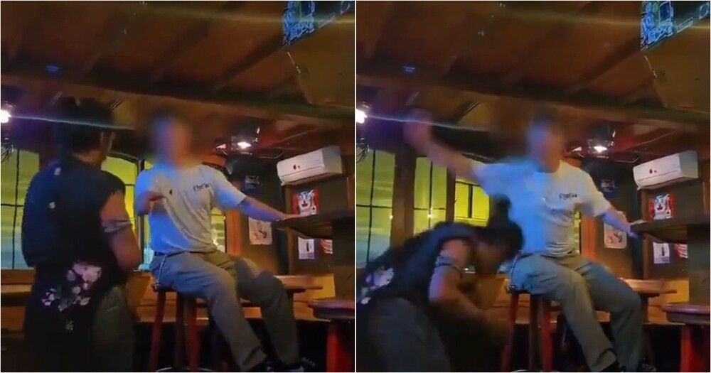В баре один из посетителей начал приставать к молодому человеку, но парень не стал терпеть домогательств и одним ударом обезвредил агрессора.