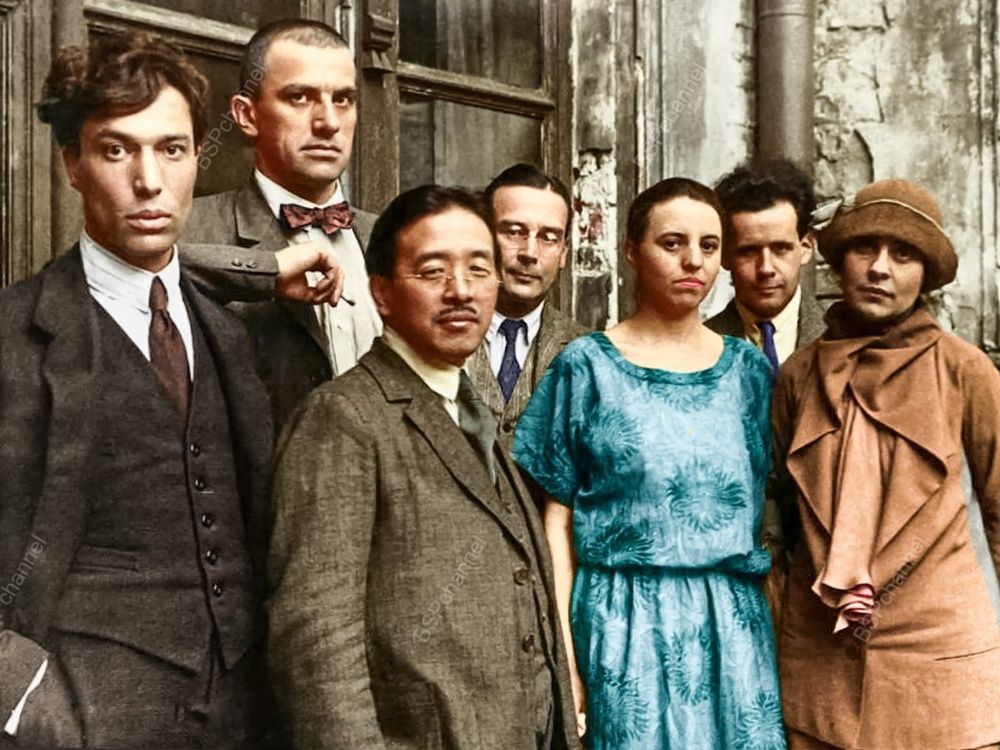 Борис Пастернак, Владимир Маяковский, японский писатель Тамизи Найто, дипломат Вознесенский, Ольга Третьякова, Сергей Эйзенштейн, Лиля Брик. ЛЕФ - сокращение от "Левый фронт искусств" был объединением советских авангардистов, действовавшим в 1920-е годы. Он возник в 1922 году в Москве как преемник более ранней группы "Коммуна искусства" и стал платформой для художников, писателей, критиков и теоретиков, выступавших за революционное, "производственное" искусство, тесно связанное с задачами социалистического строительства. В 1923 году начал выходить журнал "ЛЕФ", а с 1927 года - "Новый ЛЕФ", где публиковались стихи, манифесты, статьи о литературе, театре, кино и дизайне. К концу 1920-х годов влияние ЛЕФа пошло на убыль: с одной стороны, его радикализм стал неудобен для всё более централизованной советской культурной политики, с другой - внутри движения назрели разногласия. В 1930 году ЛЕФ фактически прекратил существование, уступив место официальной доктрине социалистического реализма.