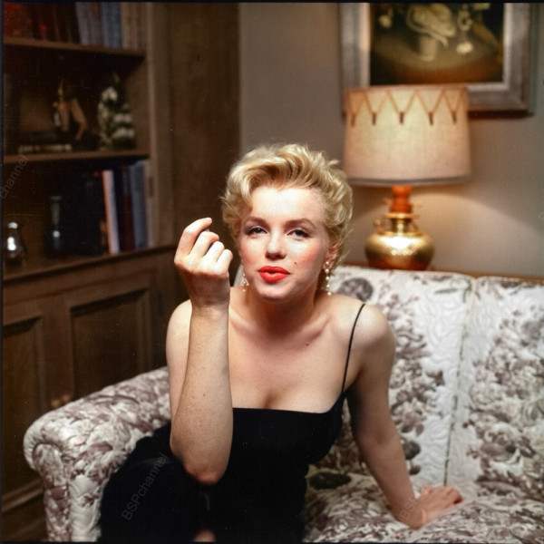 Кинозвезда Мэрилин Монро проводит пресс-вечеринку у себя дома. Лос-Анджелесе, Калифорния, 1956 год.