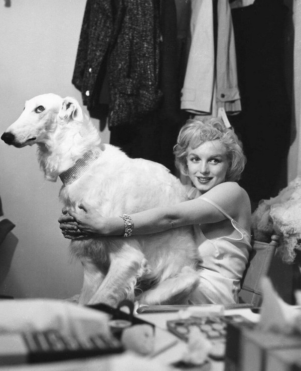 Снимок Мэрилин с собакой в гримёрной, 27 мая 1957 года.