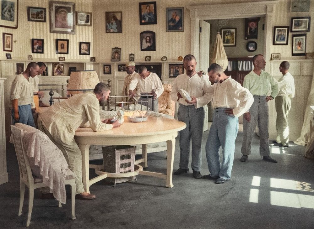 Первые гости крестьянского курорта прибывали в Севастополь, где их на пристани и железнодорожном вокзале встречали автомобили "Крымкурсо". Из вагонов и с палуб кораблей выходили бородатые мужики в тяжёлых сапогах и зипунах, щурясь от яркого южного солнца, которого не знали на родине. В руках они держали котомки и солдатские вещмешки, набитые скромными припасами - сухарями и салом, чтобы "не пропасть с голоду". Для них всё вокруг было чужим и ошеломляющим: незнакомая архитектура, пышная зелень, море, солнце, живописная дорога в Ливадию... Сегодня подобное переживание назвали бы культурным шоком. За воротами санатория их ждал санпропускник, после которого "трудящиеся от сохи" выходили уже в казённой одежде: белых рубашках и брюках, с пижамой, шлёпанцами и длинными трусами для загара - предметами, казавшимися им странными и почти неприличными. Ещё больше удивляло их постельное бельё - белоснежные простыни, на которые страшно было даже сесть. А главное чудо еда. В деревне мясные блюда появлялись раз в 10-12 дней, а белый хлеб считался роскошью. Здесь же их кормили так щедро и разнообразно, что они искренне верили: "по-императорски".