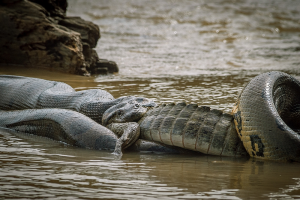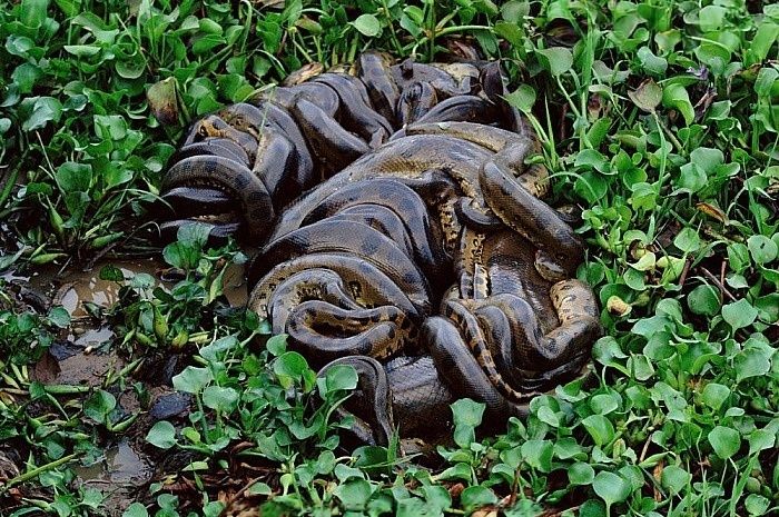 Анаконда - живородящий вид. Около 6-7 месяцев яйца развиваются внутри тела матери. Всё это время она сама практически не ест, живёт за счёт накопленных запасов. На счету каждая калория. Потому обессиленный самец, с которым ты бурно мутила весь сезон размножения, кажется для дамы крайне аппетитным!