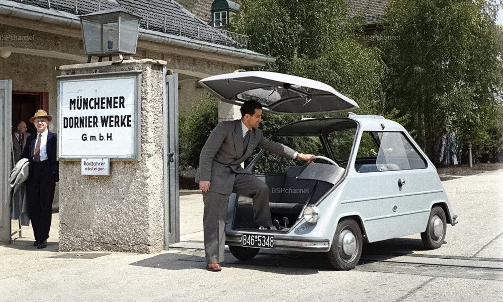Немецкие авиаконструкторы компании Dornier из Мюнхена создали уникальный миниатюрный автомобиль-пузырь "Дельта", способный перевозить четырех человек и развивать скорость до 65 км/ч.