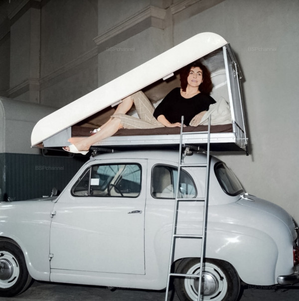 Новое революционное изобретение для кемпинга - палатка на крыше автомобиля Austin A40. 1960 год.