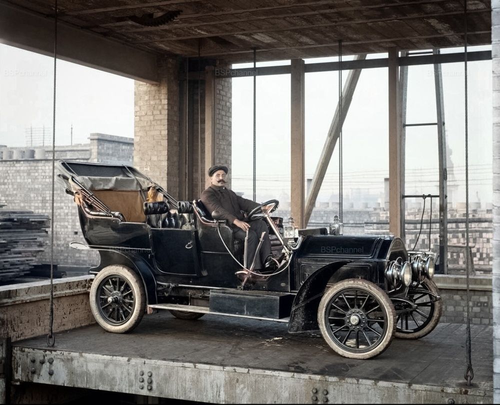 Автомобильный подъемник в компании Mitchell Motors, 114 Уордур-стрит, Вестминстер, Лондон, 1907 год.