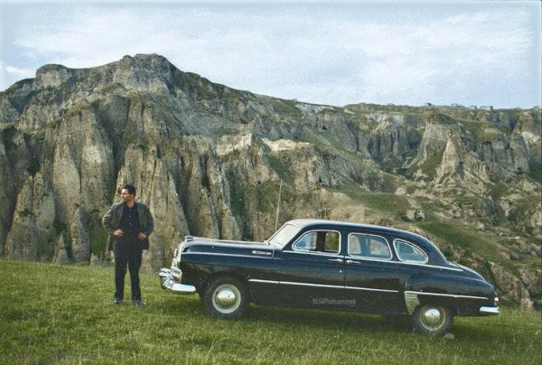 Мужчина около автомобиля ГАЗ-12 ЗиМ в горах. Армянская ССР, 1960-е.