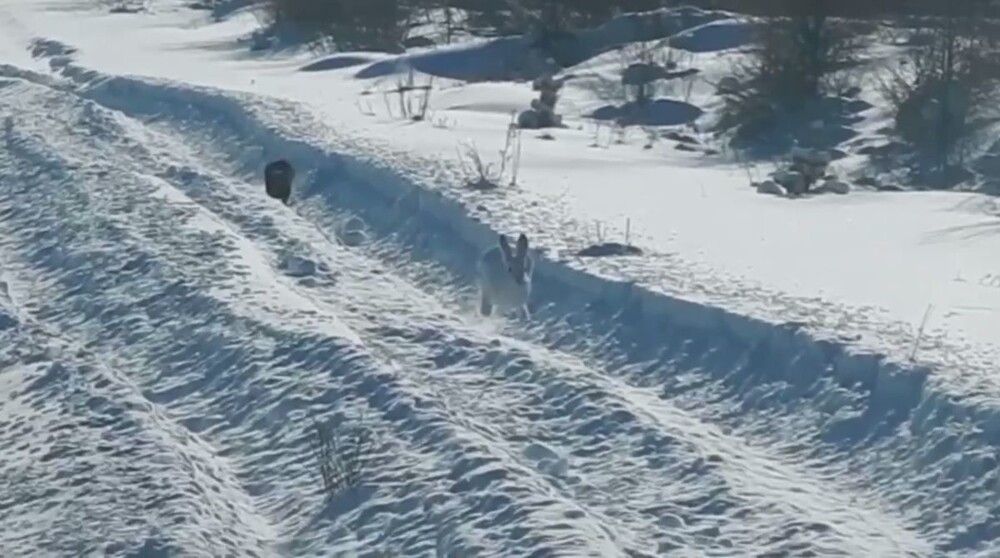Инспектор Джилинского заказника в Забайкалье запечатлел погоню соболя за зайцем. В какой-то момент ушастый подбежал к автомобилю инспектора и уселся рядом. Соболь решил не подходить к транспортному средству и ушёл.