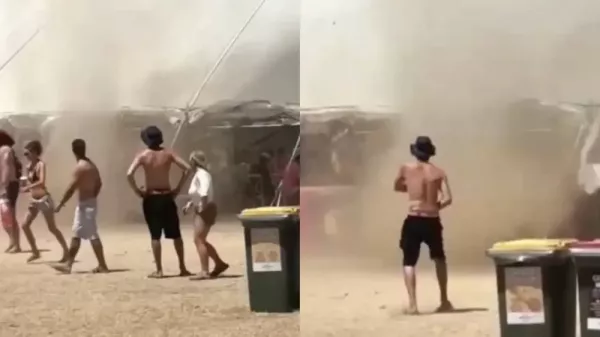 Забавное видео из Австралии: мужчина без страха бросается на небольшой вихрь и изображает бой со стихией.