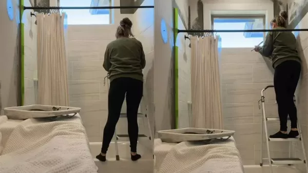Женщина решила покрасить стену в ванной и встала на стремянку, поставив её на бортики ванной. Идея оказалась не самой удачной - равновесие было потеряно, и ремонт закончился травмой и минус одним зубом.