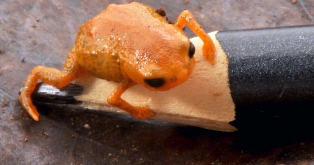 Биологи отыскали в бразильских тропических лесах очаровательную "тыквенную" жабу, ранее неизвестную науке. У этой амфибии ярко-оранжевое тело с зелёными и коричневыми пятнышками, изящные лапки и чёрные глаза. Её размеры и вправду крошечные - около полутора сантиметров в длину!